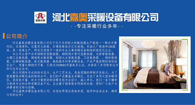 河北嘉奥采暖设备有限公司,欢迎各界朋友莅临参观、指导和洽谈业务,期待与您的合作!