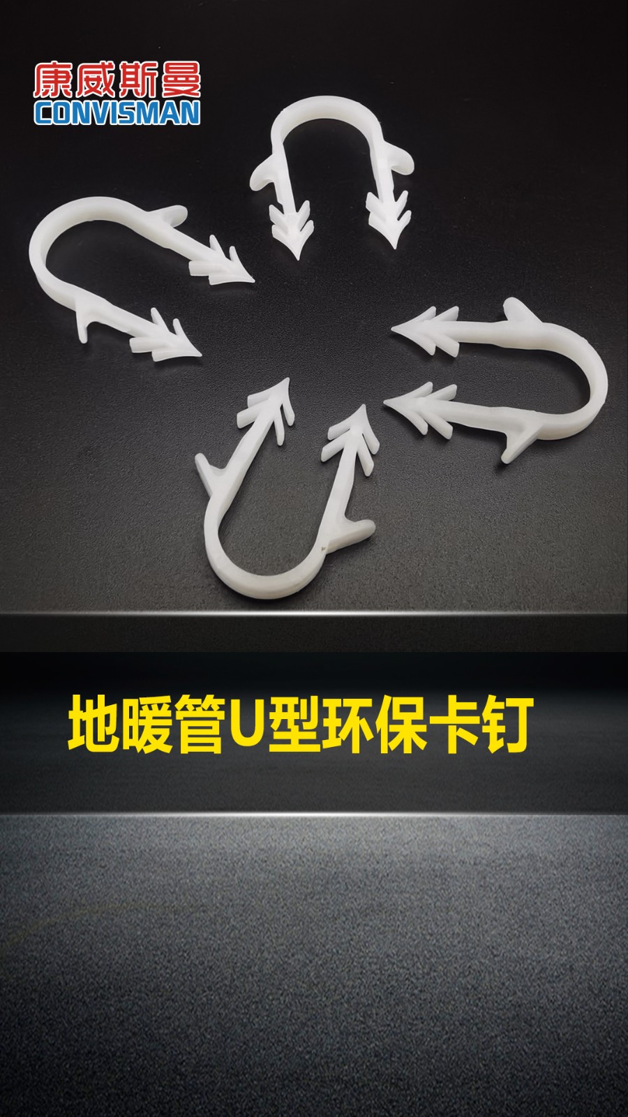 康威斯曼地暖管U型环保勾钉:严选新料,不掺杂料,食品级环保,硬度高; 加粗倒齿,结实不脱落,坚固耐用,快速安装。