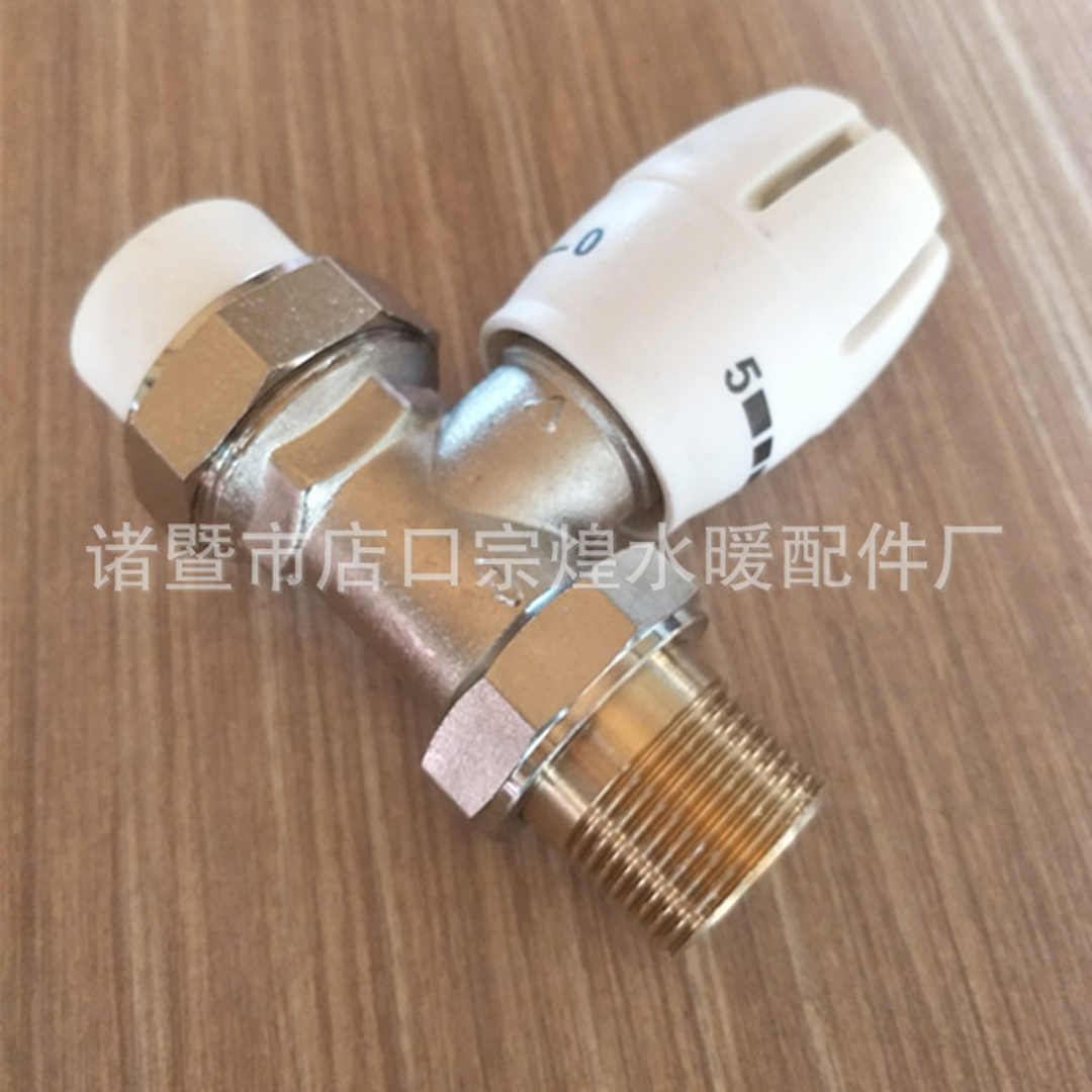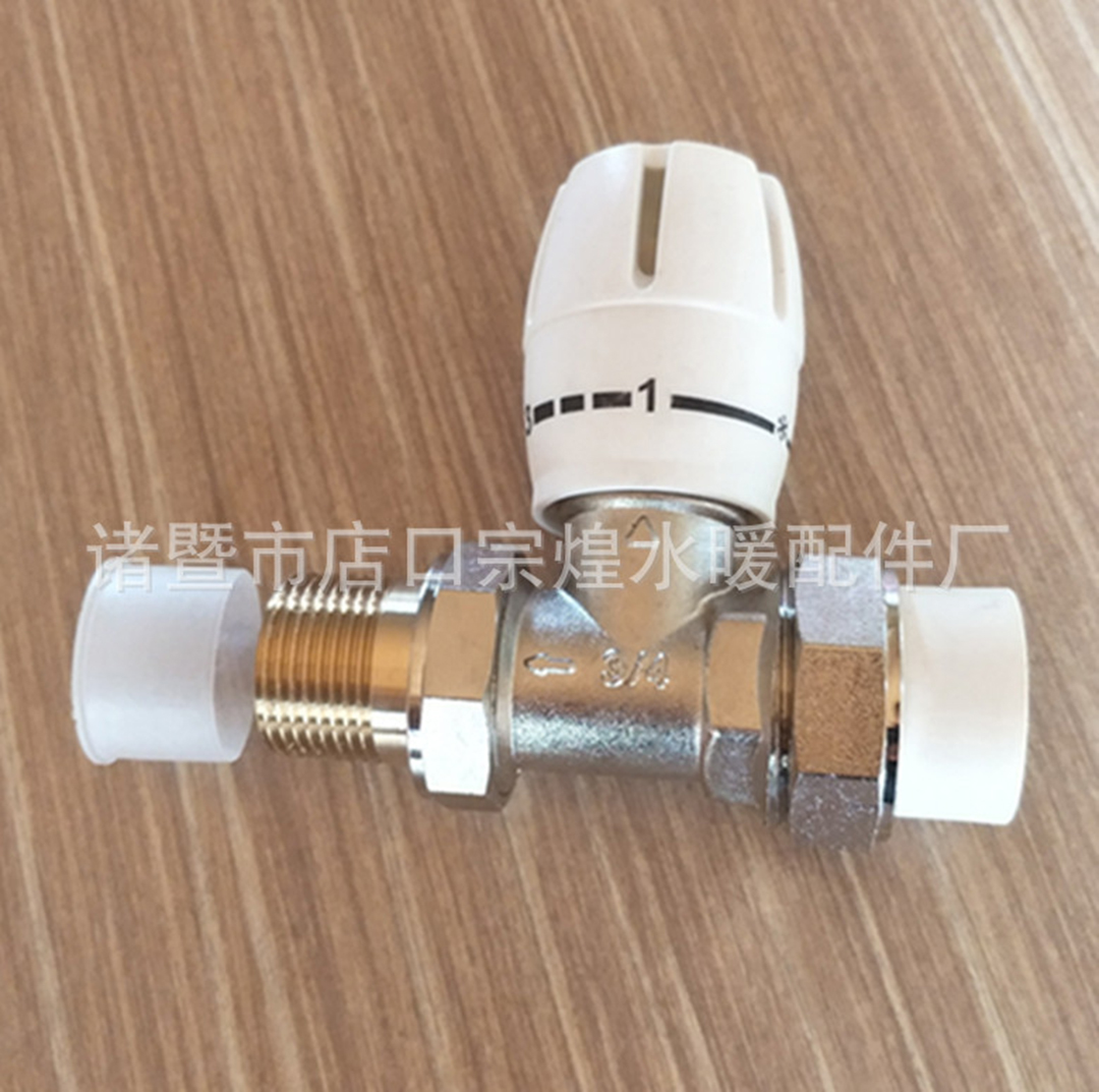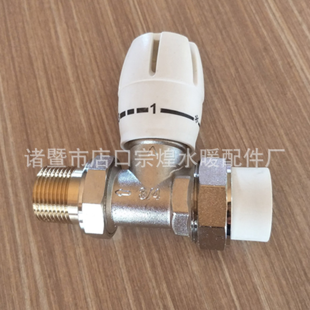 铜镀镍PPR直式角式温控阀 活接卡套式 直式角式手动温控阀: