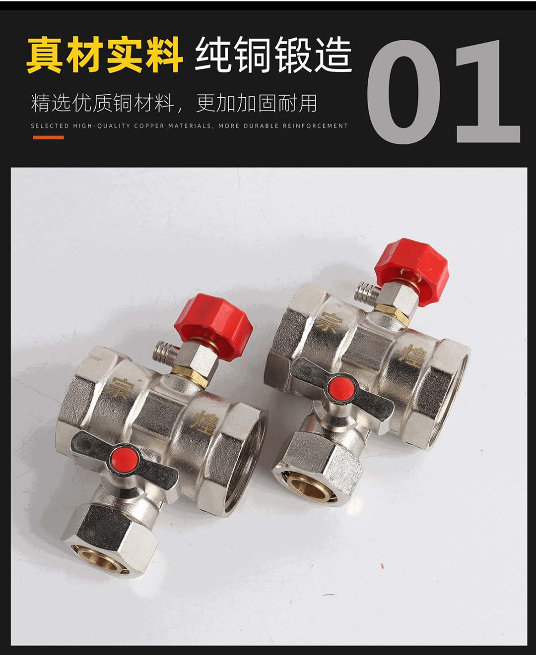 1路黄铜加厚镀镍铜分水器 锻压连体地暖分水器家装地热管分集水器: