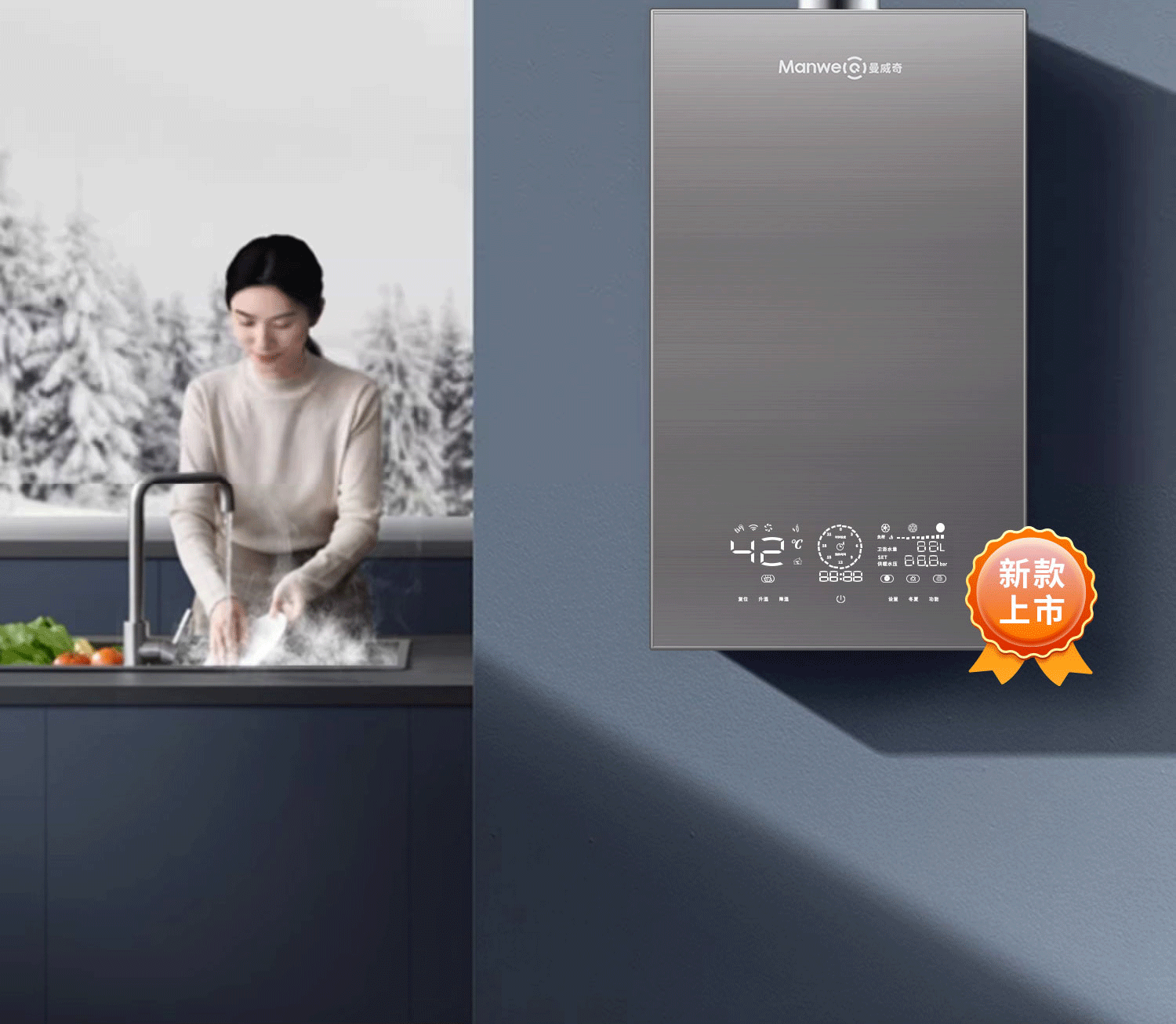 水星A系列数智燃气壁挂炉24KW:国产智能壁挂炉,手机APP控制,司服热水,气候补偿,远程售后,远程维修,热水稳定