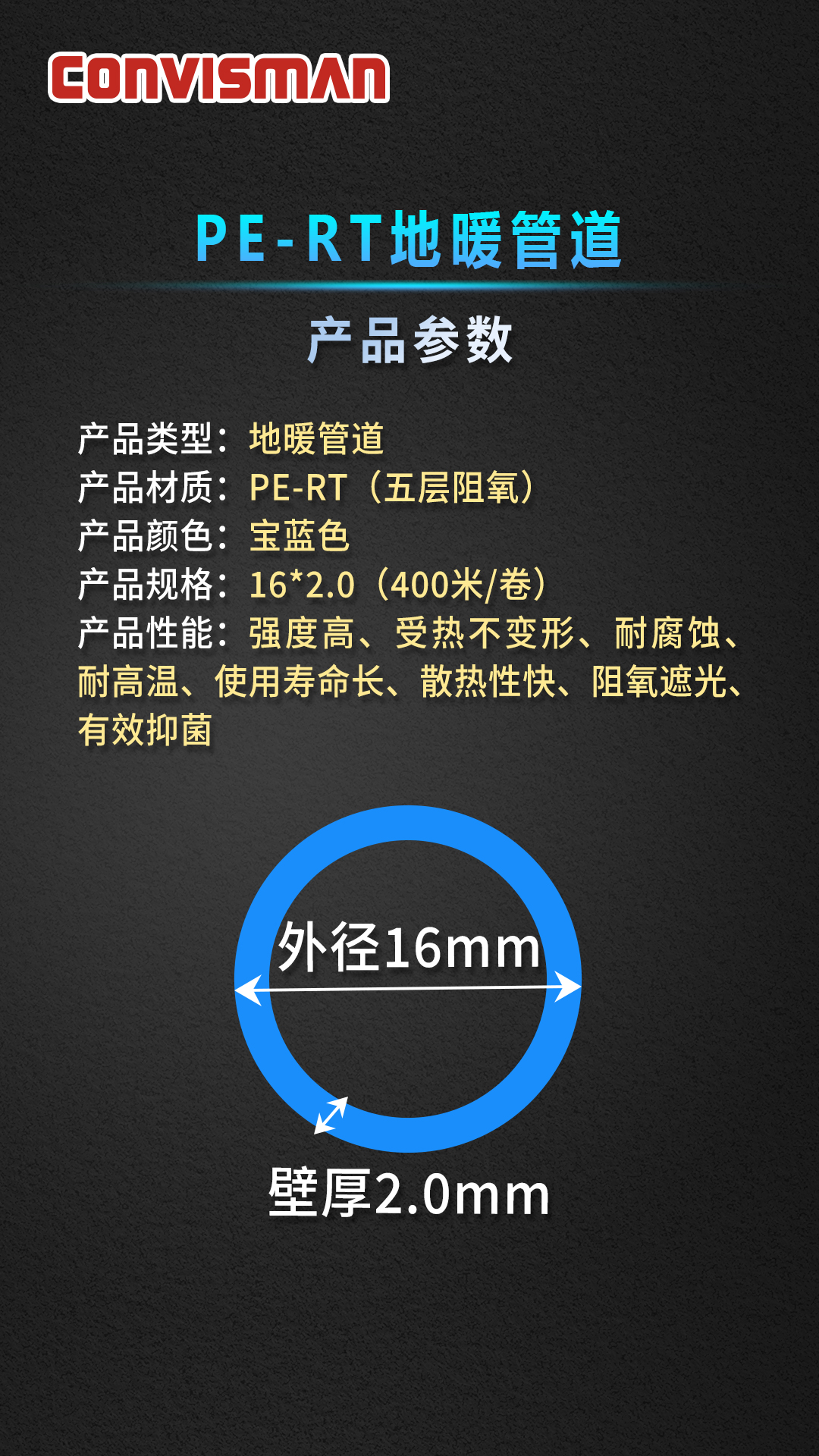 康威斯曼PE-RT五层阻氧地暖管:
